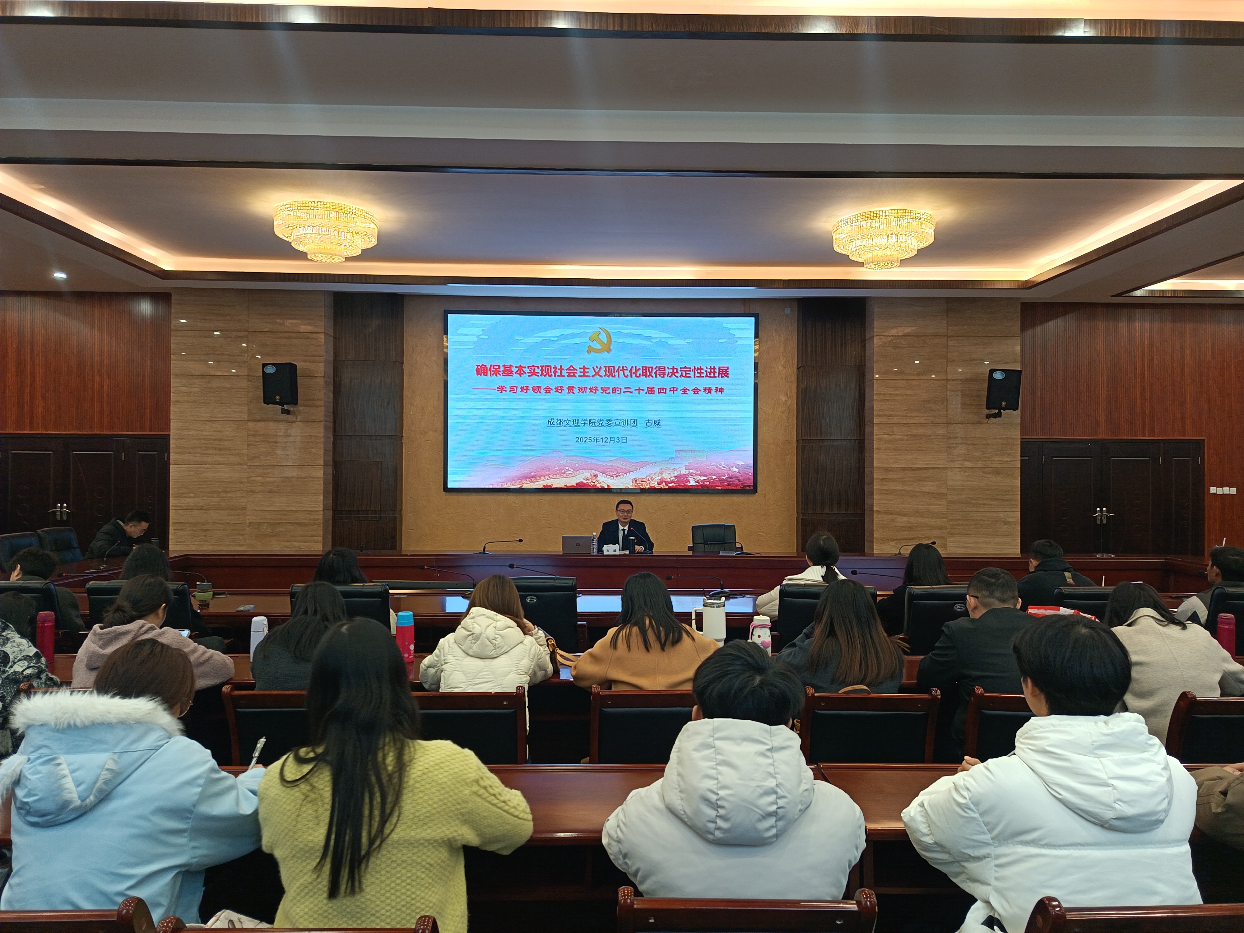 按照学校党委统一安排,12月3日,学习贯彻党的二十届四中全会精神学校党委宣讲团在会计学院开展宣讲。学校党委委员、党委宣讲团成员、马克思主义学院党总支书记古威以《确保基本实现社会主义现代化取得决定性进展 学习好领会好贯彻好党的二十届四中全会精神》为题作宣讲报告。会计学院党委书记吴操主持报告会。