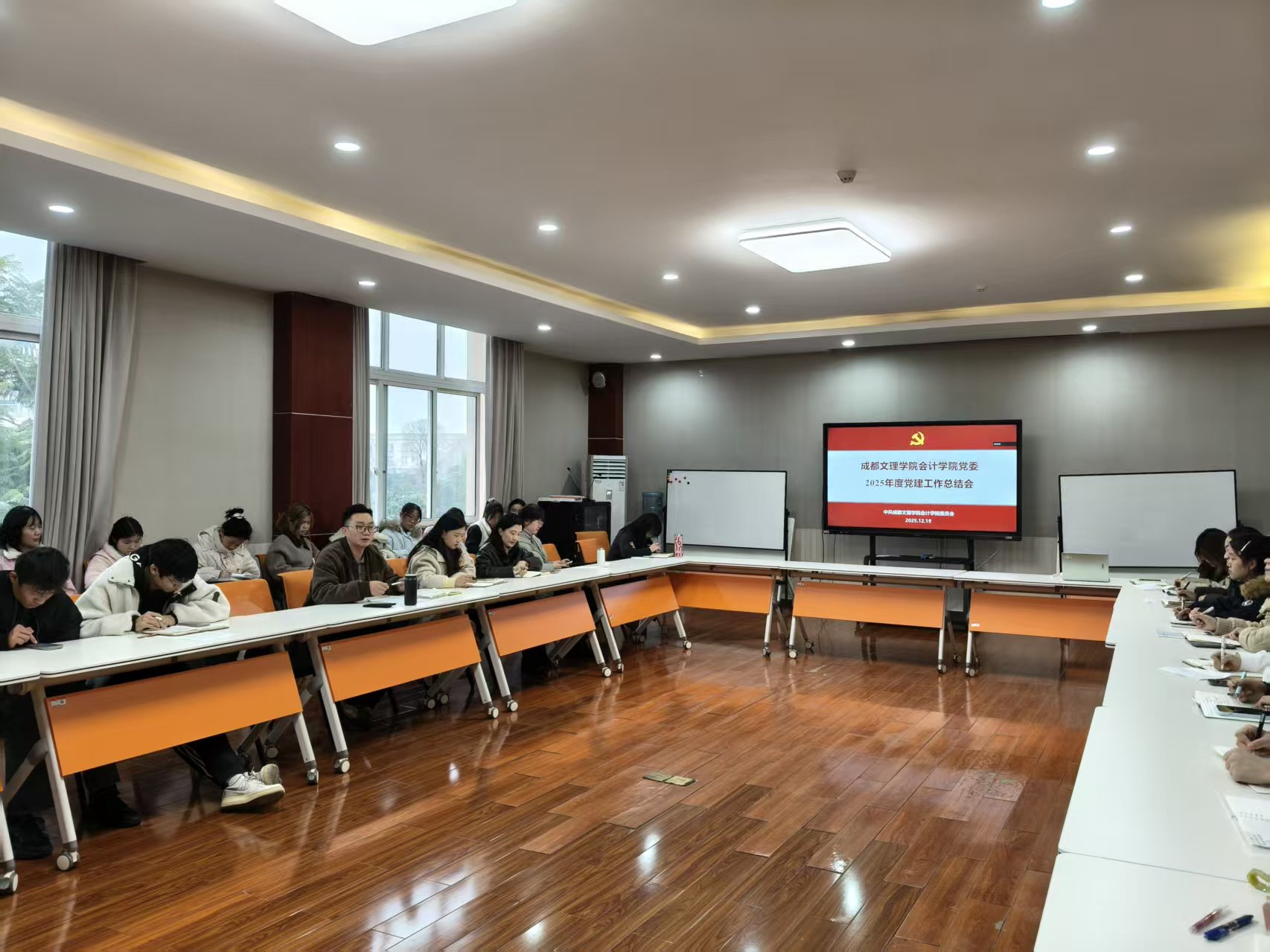 12月19日15时30分,会计学院党委于行政楼教师发展中心召开2025年度学院党建工作总结会议。会计学院党委书记吴操、各党支部书记、全体师生党员参加此次会议。