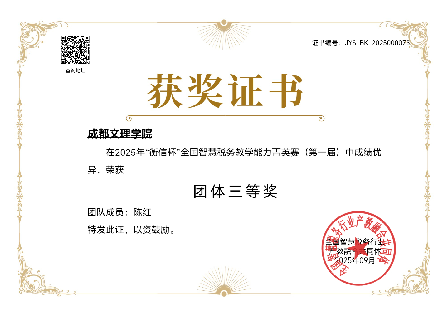 未来,我院将继续支持教师参与"衡信杯"全国智慧税务教学能力菁英赛等高水平专业赛事,以赛促教、以赛促改,不断提升教师专业实践能力和教学水平,为推动智慧税务人才培养和专业建设做出更大贡献。
