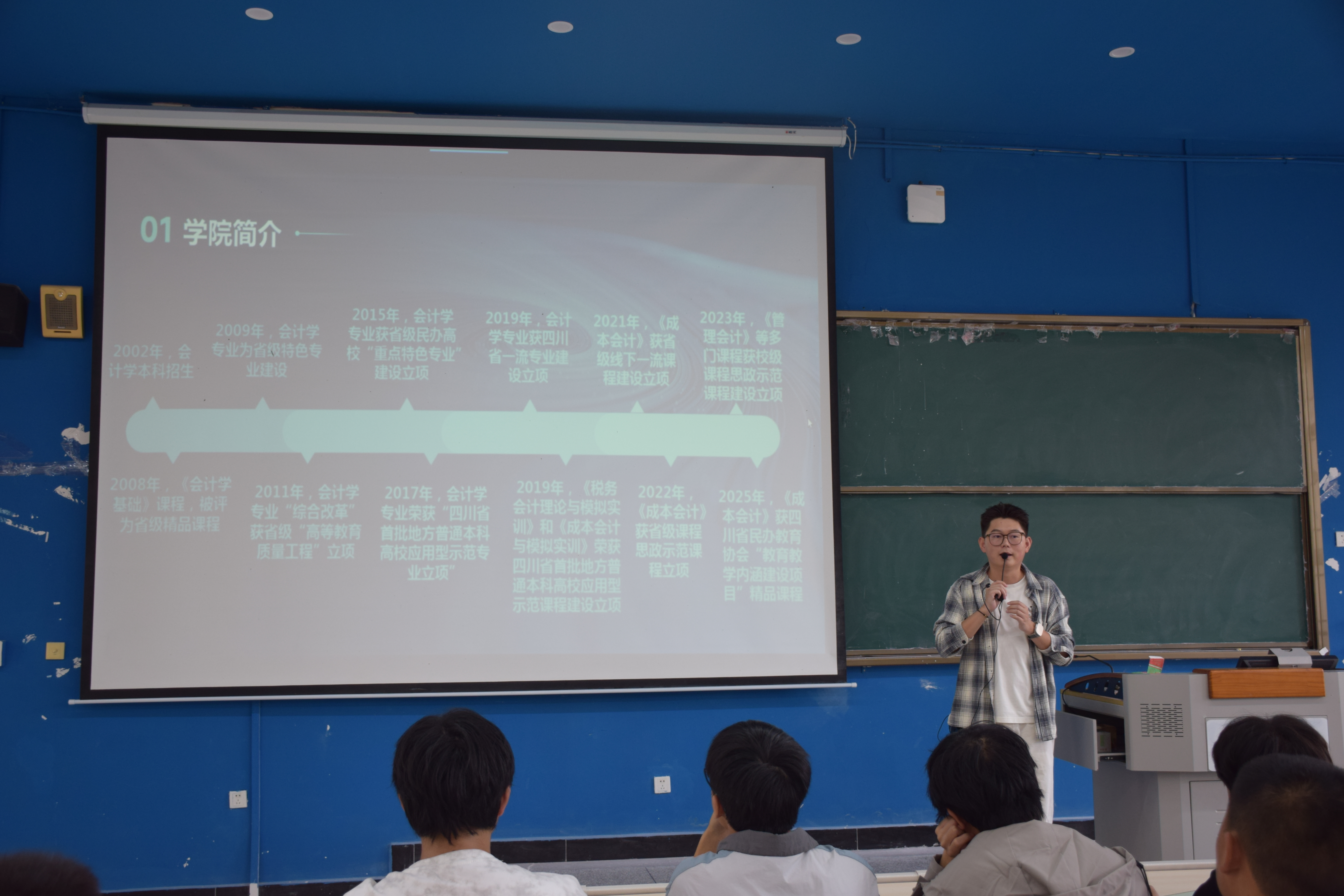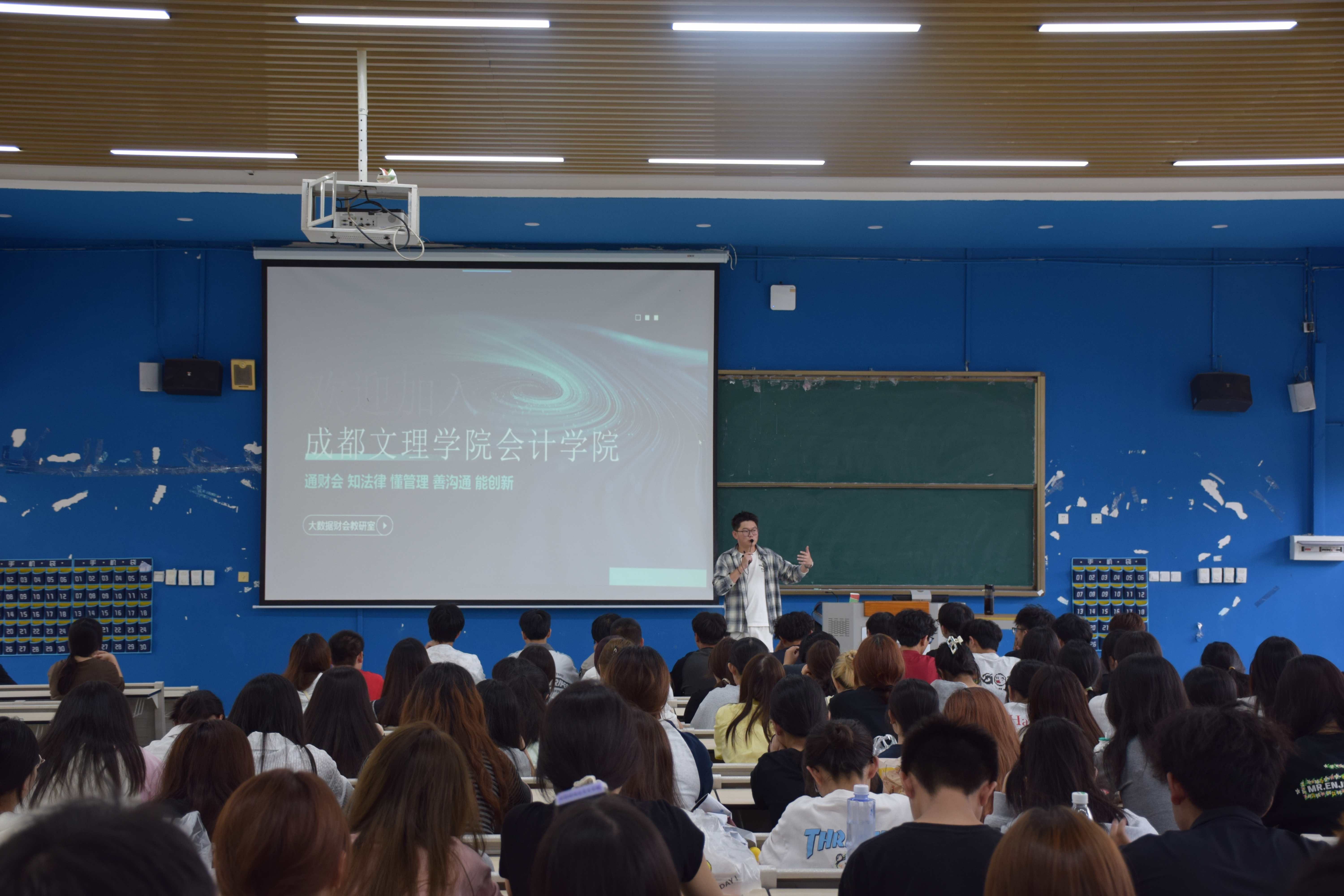 9月18日,成都文理学院会计学院面向大数据与会计、大数据与审计专业的2025级新生,成功举办了一场内容丰富、导向明确的新生专业教育活动。本次活动由大数据财会教研室副主任董秉伟主持,旨在帮助新生深入了解专业内涵、明确学习目标、规划大学生涯,为成为“通财会、知法律、懂管理、善沟通、能创新”的应用型人才奠定基础。