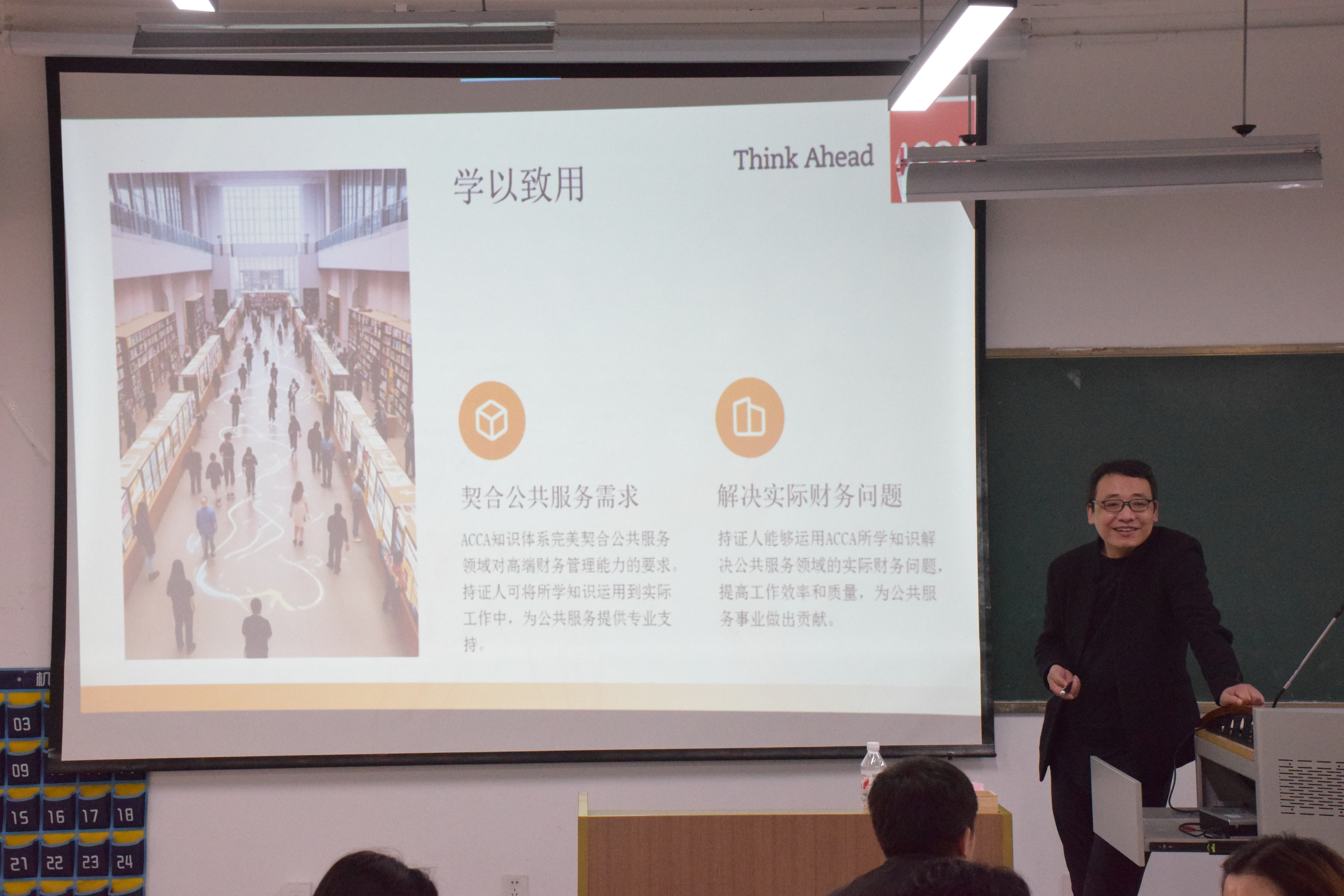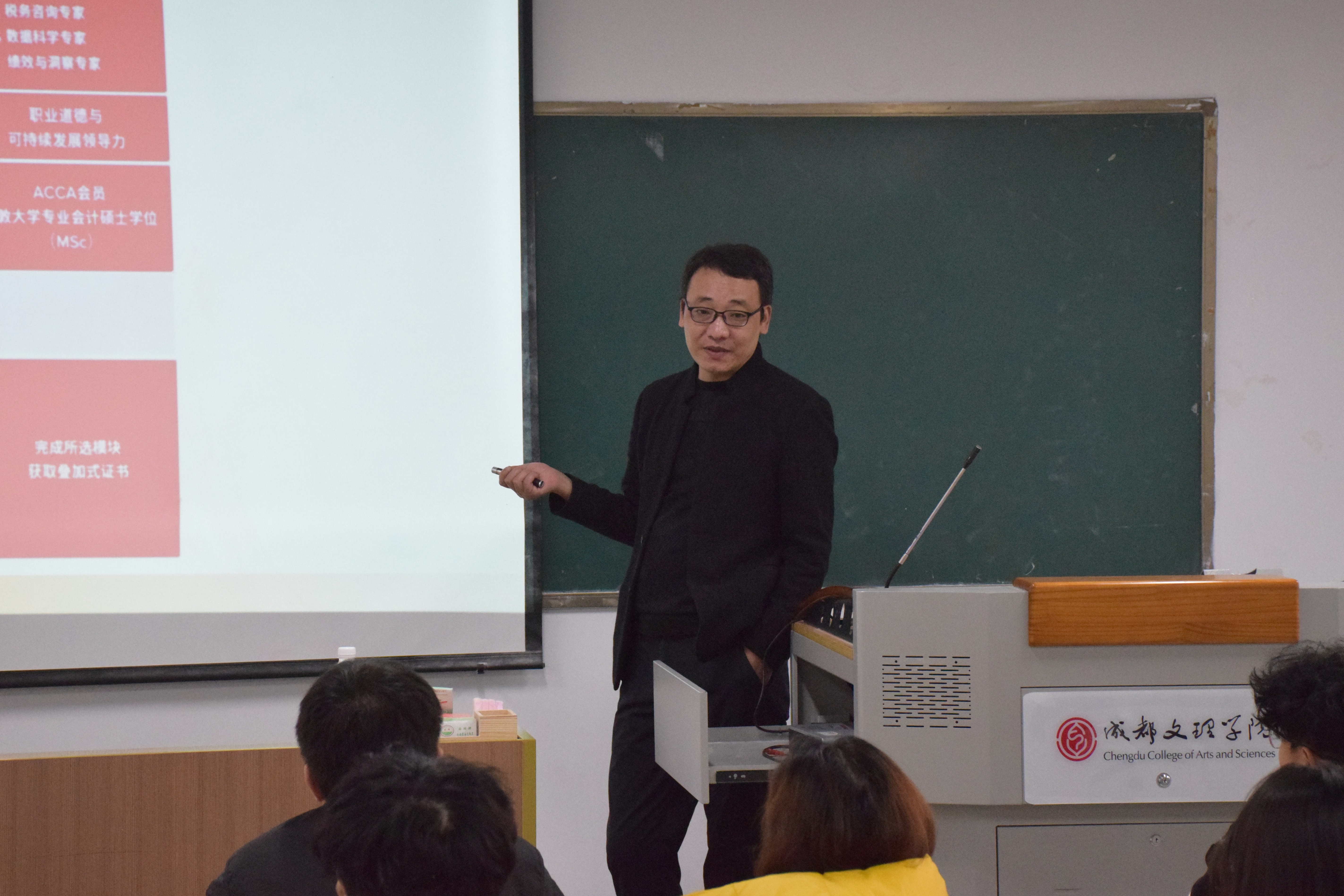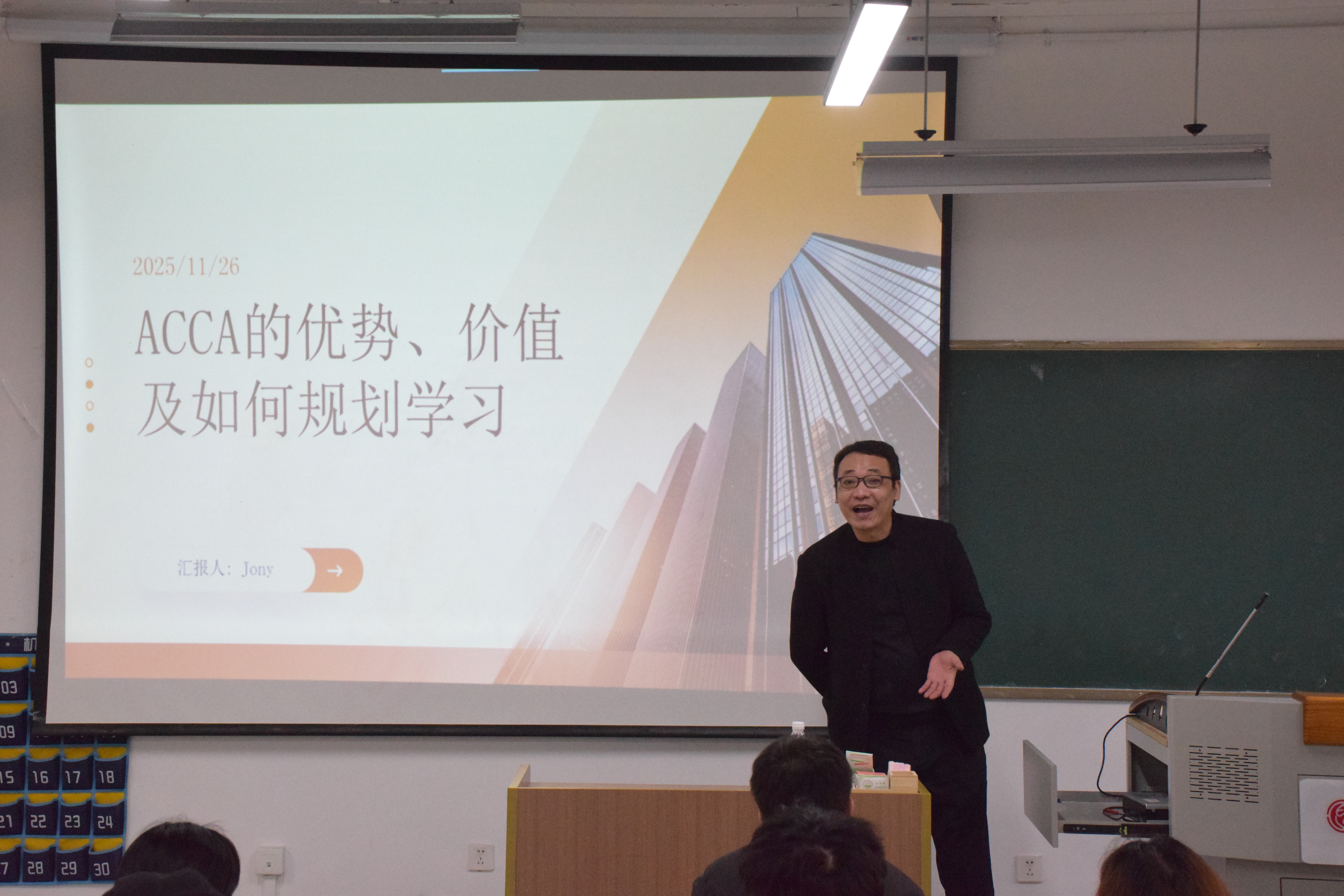 2025年12月1日,会计学院成功开展了以“ACCA的价值优势及学习规划”为主题的专题讲座,本次讲座主要针对2025级ACCA创新实验班开展,特别邀请成都中新教育负责人、成都博睿教育创始人、北京外文局培训中心西南区负责人张新营主讲。讲座深入解析了ACCA专业资格的优势、价值及学习路径,为在校学生提供了宝贵的职业发展指导。