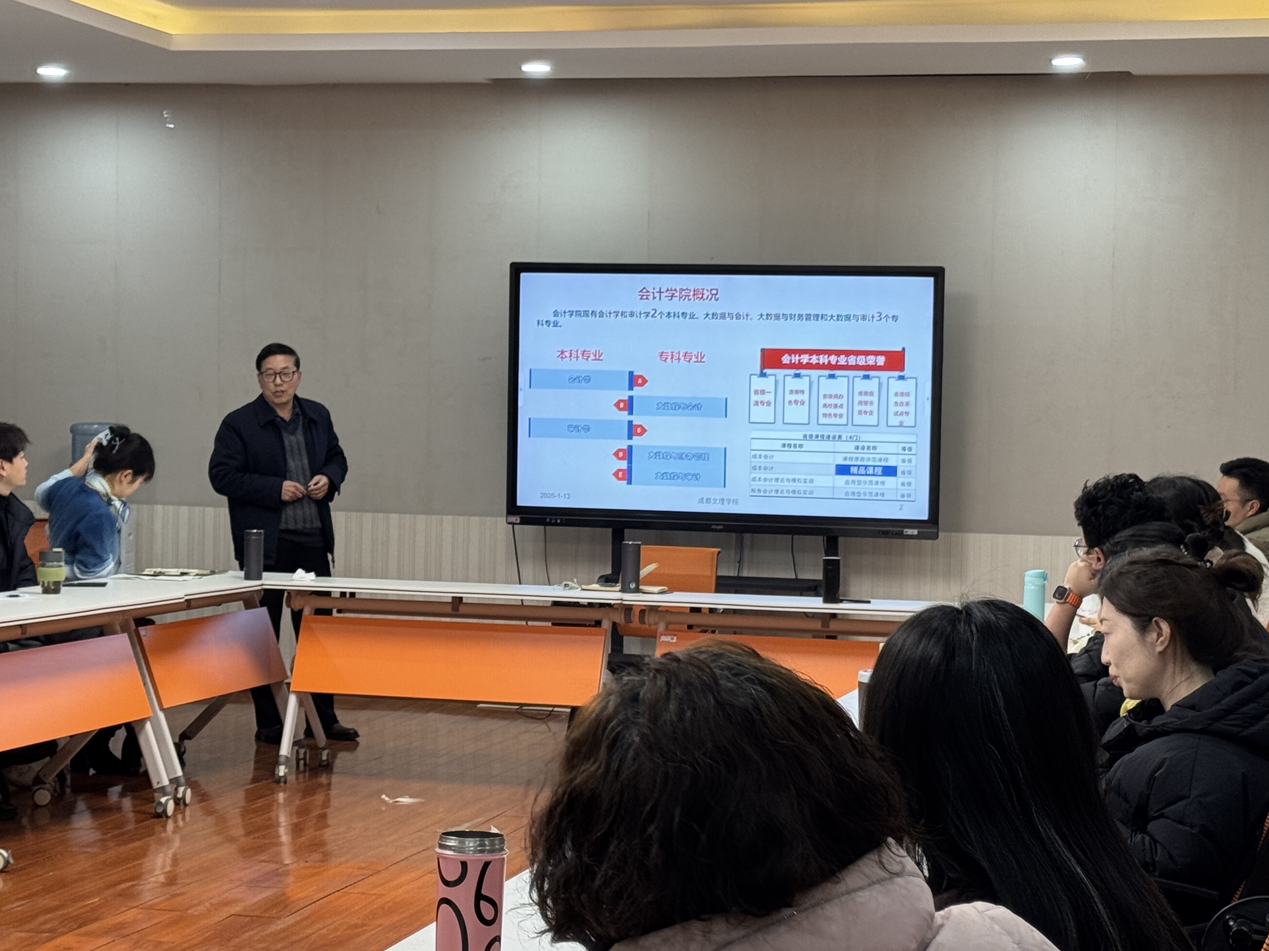 2026年1月13日,会计学院在教师发展中心召开2025-2026学年第一学期期末全体教职工大会,全面总结本学期各项工作,部署寒假及新阶段重点任务。学院院长李来儿、党委书记吴操、副院长王晓秋及全体教职工参加本次会议。