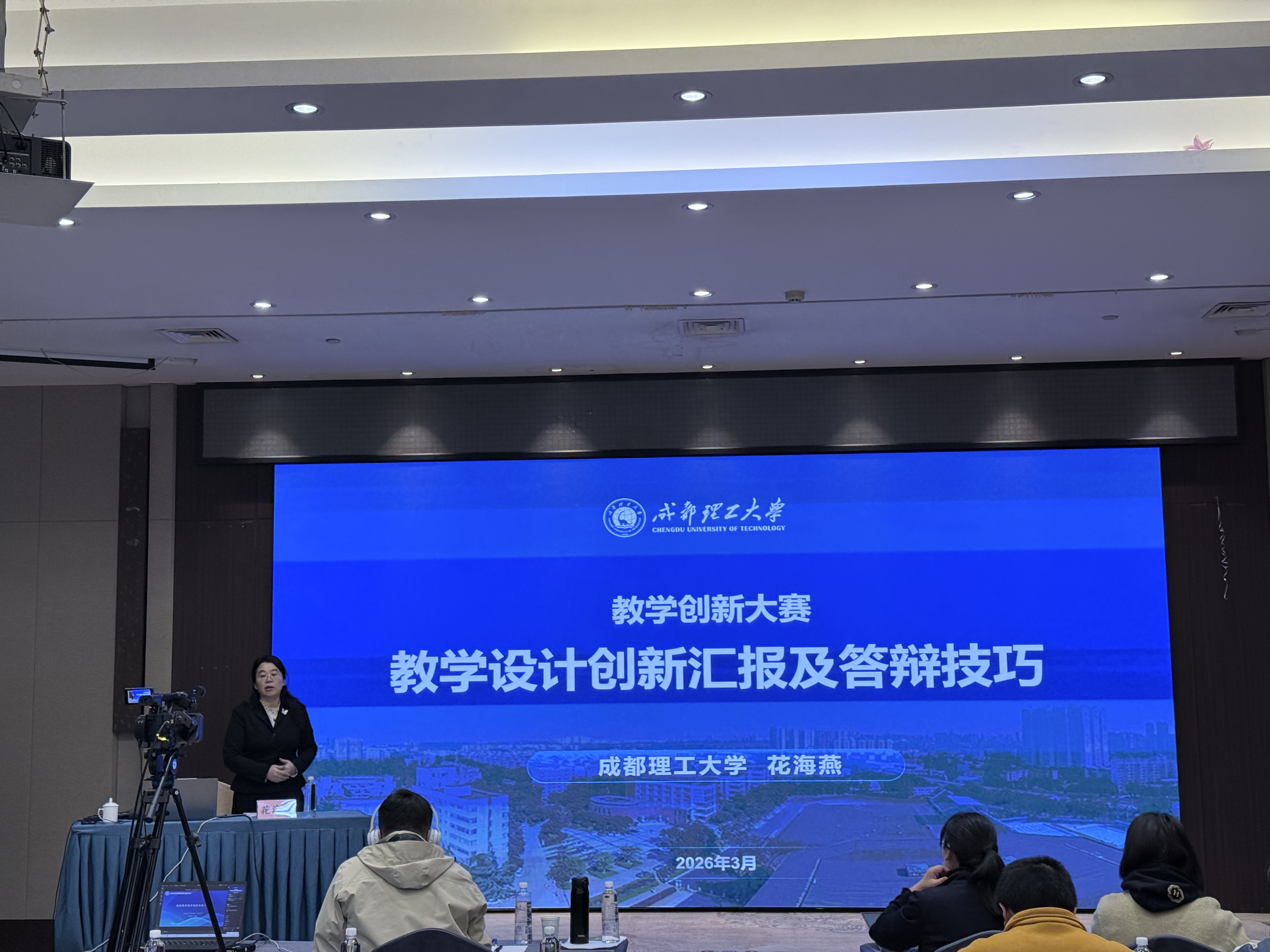 3月21日上午,成都理工大学花海燕教授与西南交通大学龚晖教授分别围绕《汇报答辩实战模拟》与《教创赛的参赛刚要》进行专题授课,结合实际案例开展模拟演练,帮助参训教师提升答辩表达与教学设计能力。下午,南京航空航天大学康国华教授以《高校教学竞赛的准备和突破》为题,从备赛理念、材料准备到赛场表现,全面梳理了教学竞赛的进阶路径。
