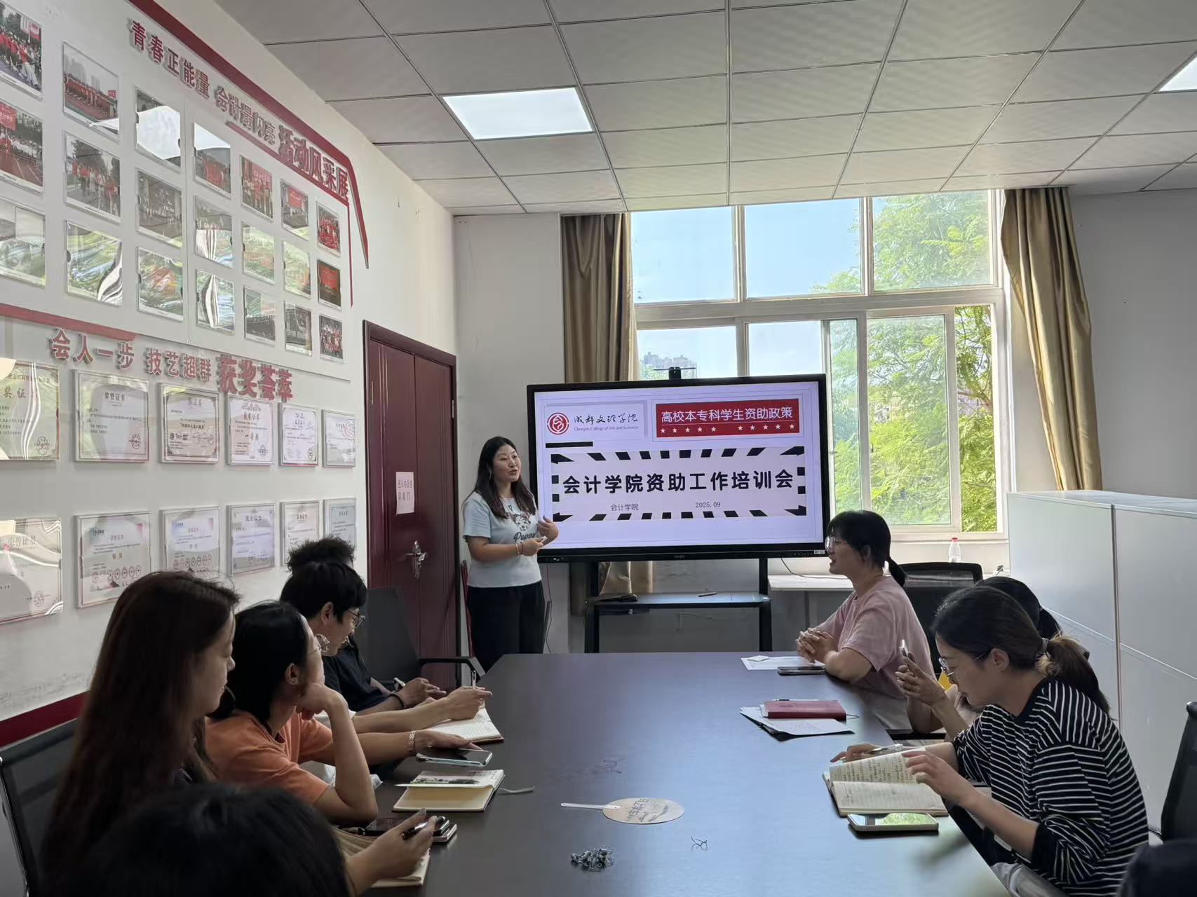 为全面贯彻落实国家资助政策,进一步提升我院学生资助工作的规范化与精准化水平,9月19日15时,会计学院举办资助工作专题培训会。党委书记吴操、学工办主任李晓卫以及全体辅导员参加会议。会议由学院资助工作指导老师朱文静主持。
