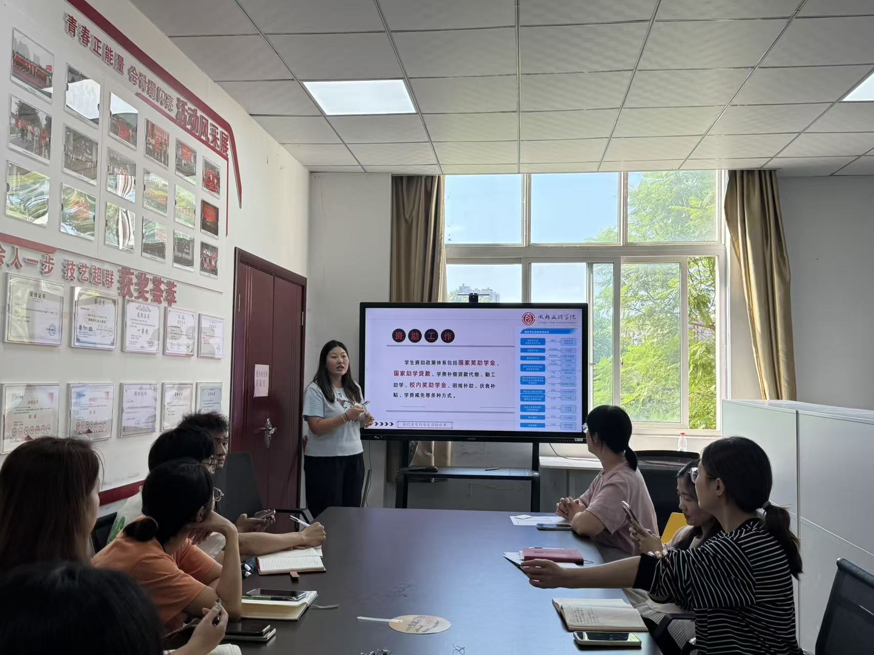 培训会首先围绕国家助学金展开。会议详细介绍了国家助学金的资助政策宣讲要点,重点解读了家庭经济困难学生认定工作的原则、等级与规范流程,要求做到客观公正、保护隐私。随后,对助学金评定流程、名额分配及公示环节作了明确规范,确保资助精准到位。