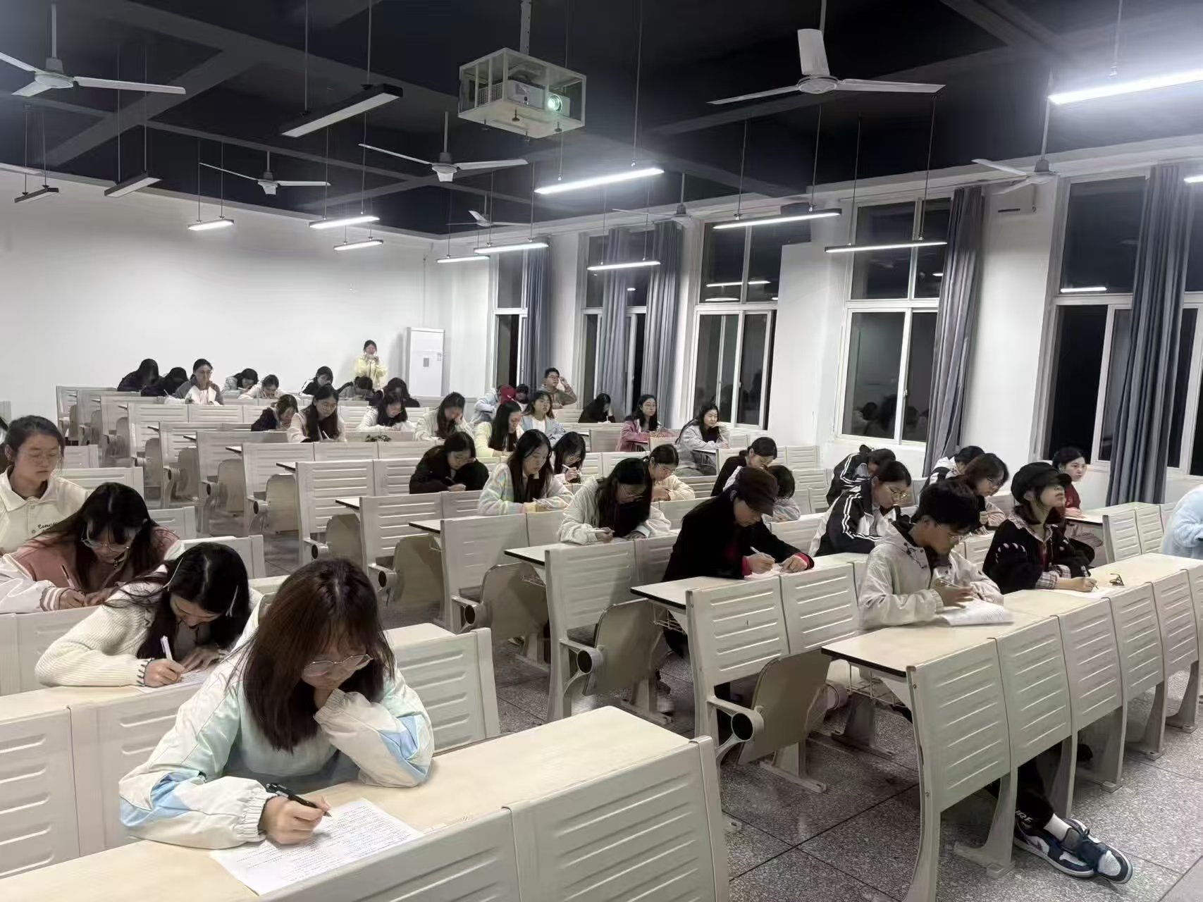 在竞赛筹备阶段,各部门负责人细致周密地落实各项考务安排,精心布置考场座位、完善板书内容,并对试题与签到表进行了反复核对,为竞赛的顺利进行打下坚实基础。开考前十分钟,工作人员有序引导参赛同学入场签到,待考生就座后,逐一强调了考试注意事项,严肃考风考纪,营造了规范、严谨的竞赛氛围。考试正式开始后,同学们迅速进入状态,沉着思考,规范作答,展现出良好的心理知识储备与应变能力。