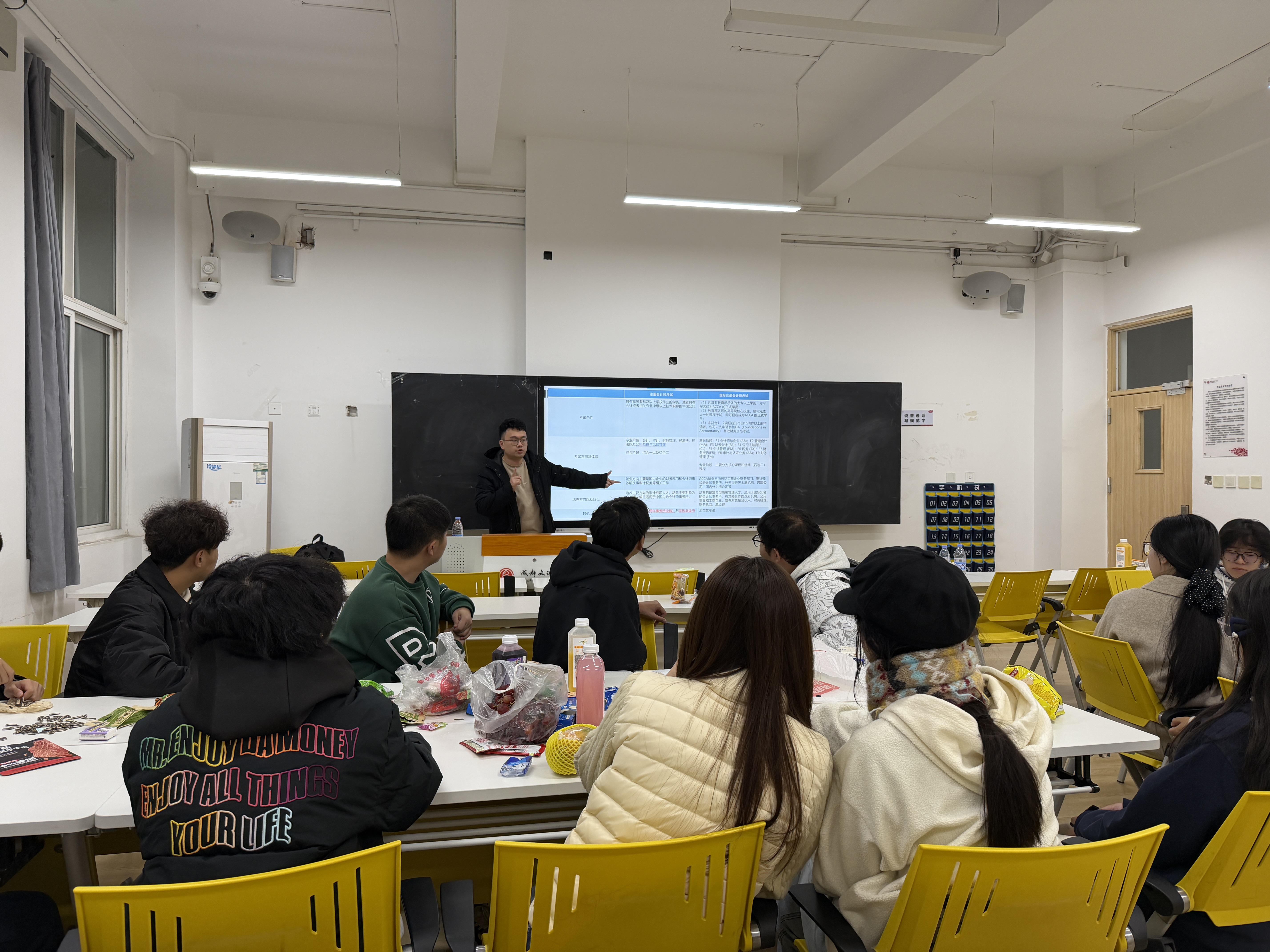 2025年11月17日晚,会计学院在主教学楼C307教室成功举办了"启航新程,共话成长"—2025级(ACCA)创新实验班班主任见面会。本次活动旨在加强班主任与新生之间的沟通与了解,帮助同学们尽快适应大学学习生活,明确专业发展方向。
